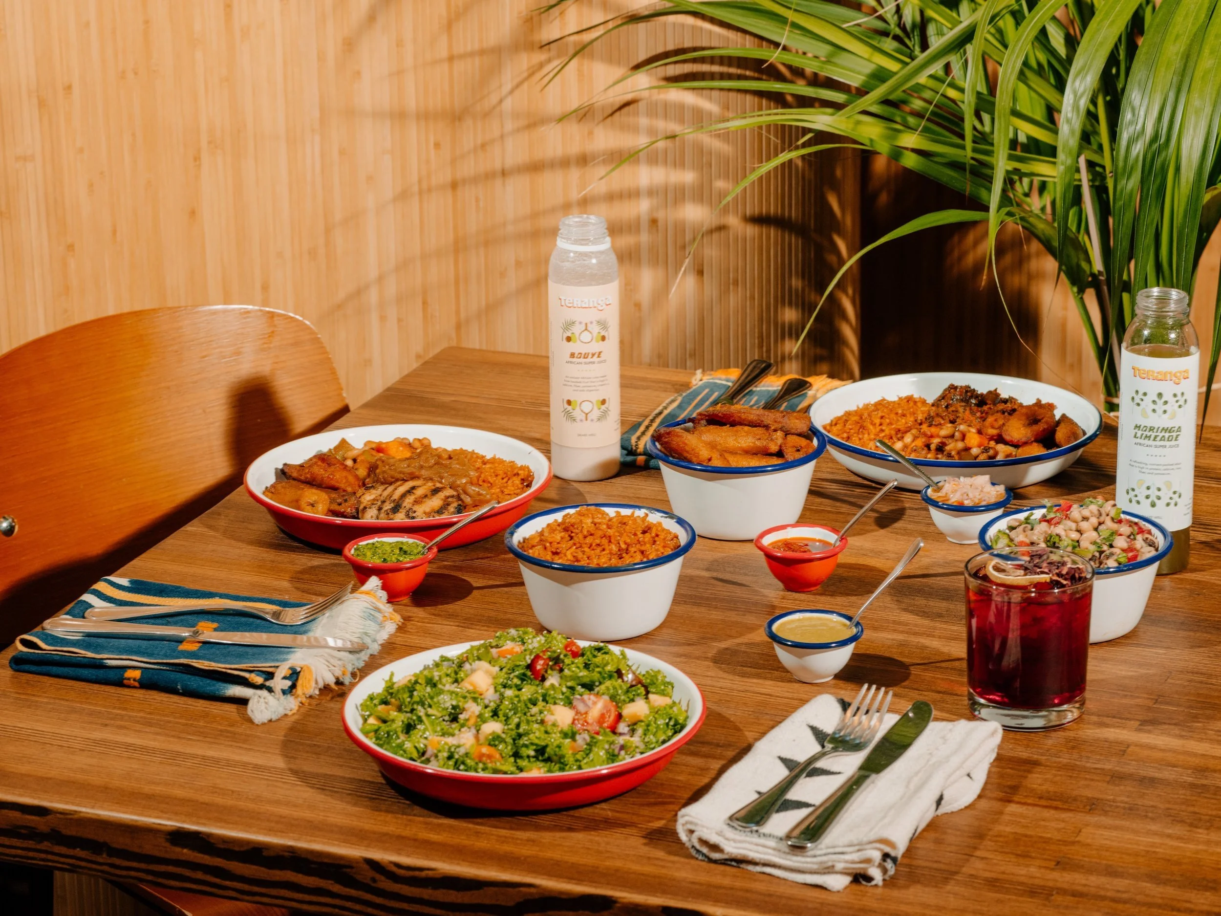 Our menu is rooted in African culinary traditions. Inspired by home cooking, we highlight ancient, nutrient-dense crops cultivated in Africa for centuries — sourced from smallholder farmers and local producers.